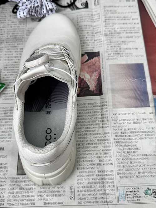 そして数日後。今度は自分のミスでゴルフシューズの片方を車に乗せ忘れ、仕方なくランニングシューズで練習することになった。