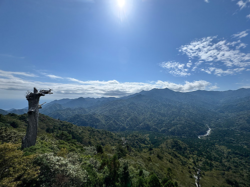思っていたよりも冷たい空気に季節の移ろいを感じながら、太鼓岩へ到達。開けた景色の向こう側には宮之浦岳、永田岳、そして太忠岳の天柱石までが一望できた。