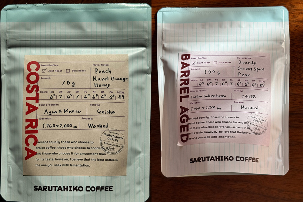 いつもコーヒーを届けてくださる猿田彦コーヒーから、今回は豆の種類だけでなく、ナチュラルやウォッシュといった加工方法の違う豆まで贈っていただいた。