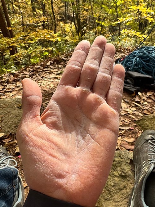 ハングしている10台のルートを登った時点で、前腕はすっかりパンプアップ。そしてかなりエネルギーを使ったあとの最後の一本は11台のルート。しっかり休憩を取っても、核心部を抜ける力がどうしても残っていなかった。