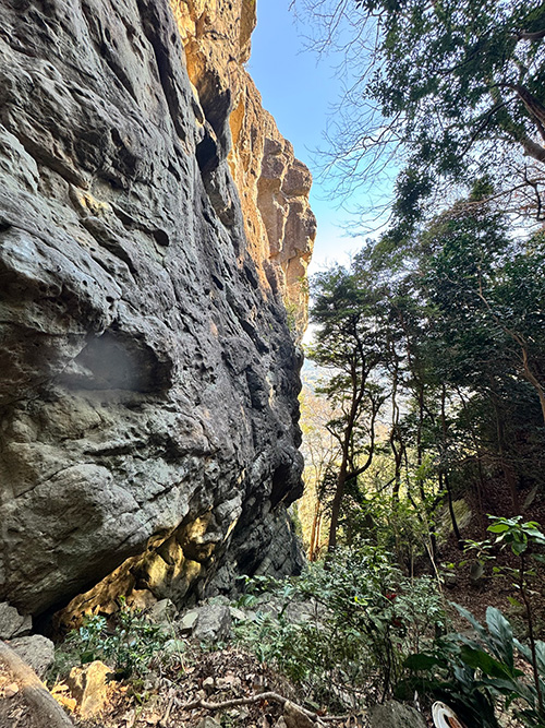 今月12月は城山の岩場へ。少しトレッキングも楽しめるワイルドボアゴージとその周辺のルートは、初めて挑むにはなかなか手強い。普段なら5.9程度であれば、初見でも気持ちにも体にも余裕を持って登れるのだが、ここではホールド探しに思いのほか時間がかかった。「ここで初めてのリードデビューをしたら、クライミングやめちゃうよね!」と、大笑いする。