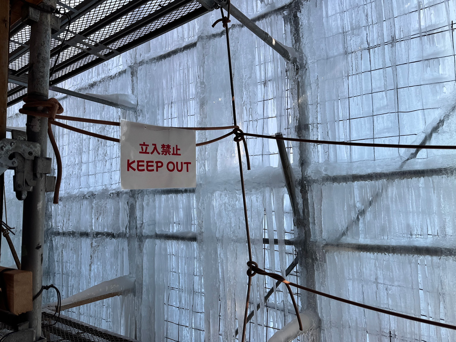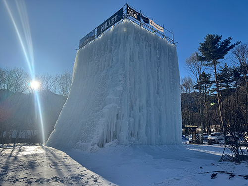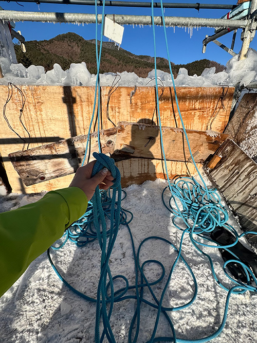 井戸水を櫓(やぐら)に散水して作られた人工の氷壁は、ここでは「アイスツリー」と呼ばれている。まだ十分な厚さには達していなかったが、これから立派に育っていくのだろう。1日目は5人、2日目は7人が参加した。初めてお会いする方もいれば、一年ぶりに再会する方もいて、どこか懐かしい雰囲気のなかで講習会が始まった。
