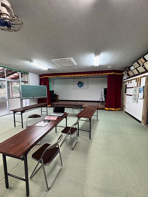 会場は永久保集落生活館。中を見学すると、ちょうど50人ほどが入れる広さだった。